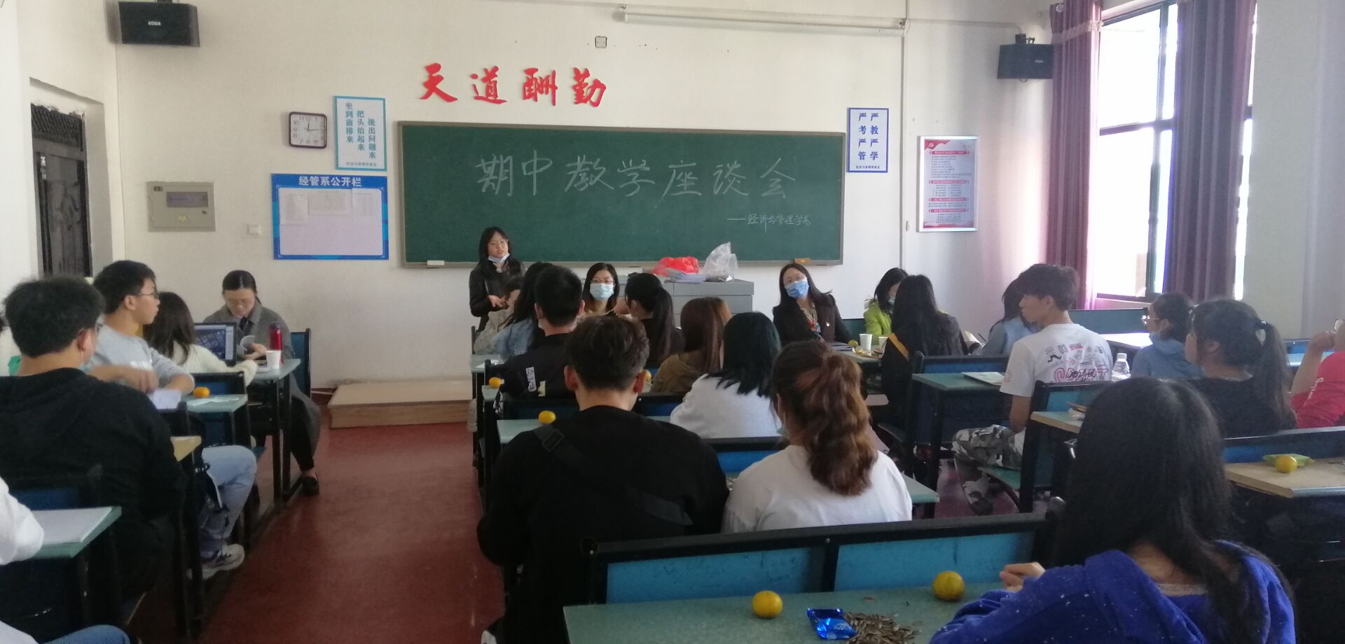 (经管系 朱靖)10月22日中午,经管系举行了期中学生座谈会,旨在“师生共聚谈现状 集思广益谋发展”。经管系副书记王春柳、副主任朱靖、系部督导、各专业负责人、教学秘书、实验员及18级、19级、20级各班班长和学习委员参加了此次会议,会议从班级学风、教学情况、教学效果等方面展开。