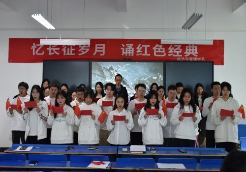 (经管系 徐凡 李建广)4月25日下午4点,经济与管理学系分团委联合经管系学生党支部在1教307开展以“忆长征岁月,诵红色经典”为主题的红色经典诵读活动,经管系师生党员、第29期入党积极分子及团员代表参与活动。