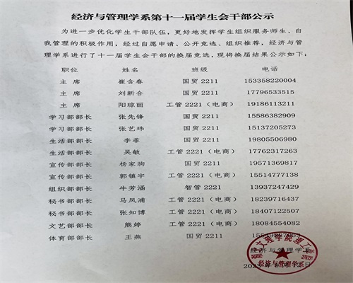 经济与管理学系第十一届学生会干部公示