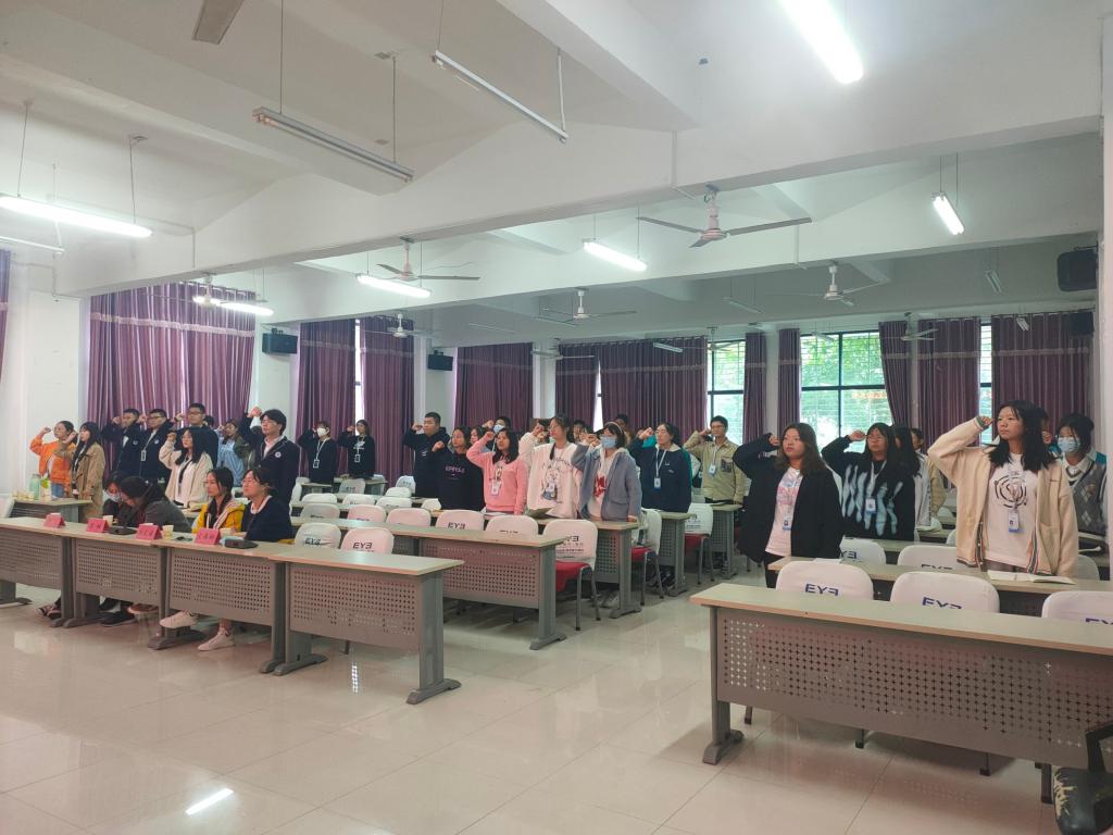 首先,主持人唐慧芳同学宣布大会正式开始,三位轮值主席和各部门部长详述本人的工作职责和任务,并对将来的工作提出期许和要求。接着,全体成员观看第8届学生会的工作回顾视频,充分感受到学长学姐的工作风采。紧接着,龚莉主席作本年度工作安排,包括本学期的学生活动、师生面对面交流等内容。接下来,杨云主席带领着全体经管系第九届学生会成员进行了宣誓,加深了干事们对学生会的认同感。随后,刘文谦老师发表了重要讲话,揭示了大会的重要性,并对干事们未来的工作许以期愿,希望同学们不忘初心。王春柳书记对大会内容作出总结,对干事们的工作态度给予了肯定,并指出细节决定成败,希望同学们将工作做细做扎实。最后,主持人宣布大会圆满结束,大家合影留念,场上一片欢声笑语。