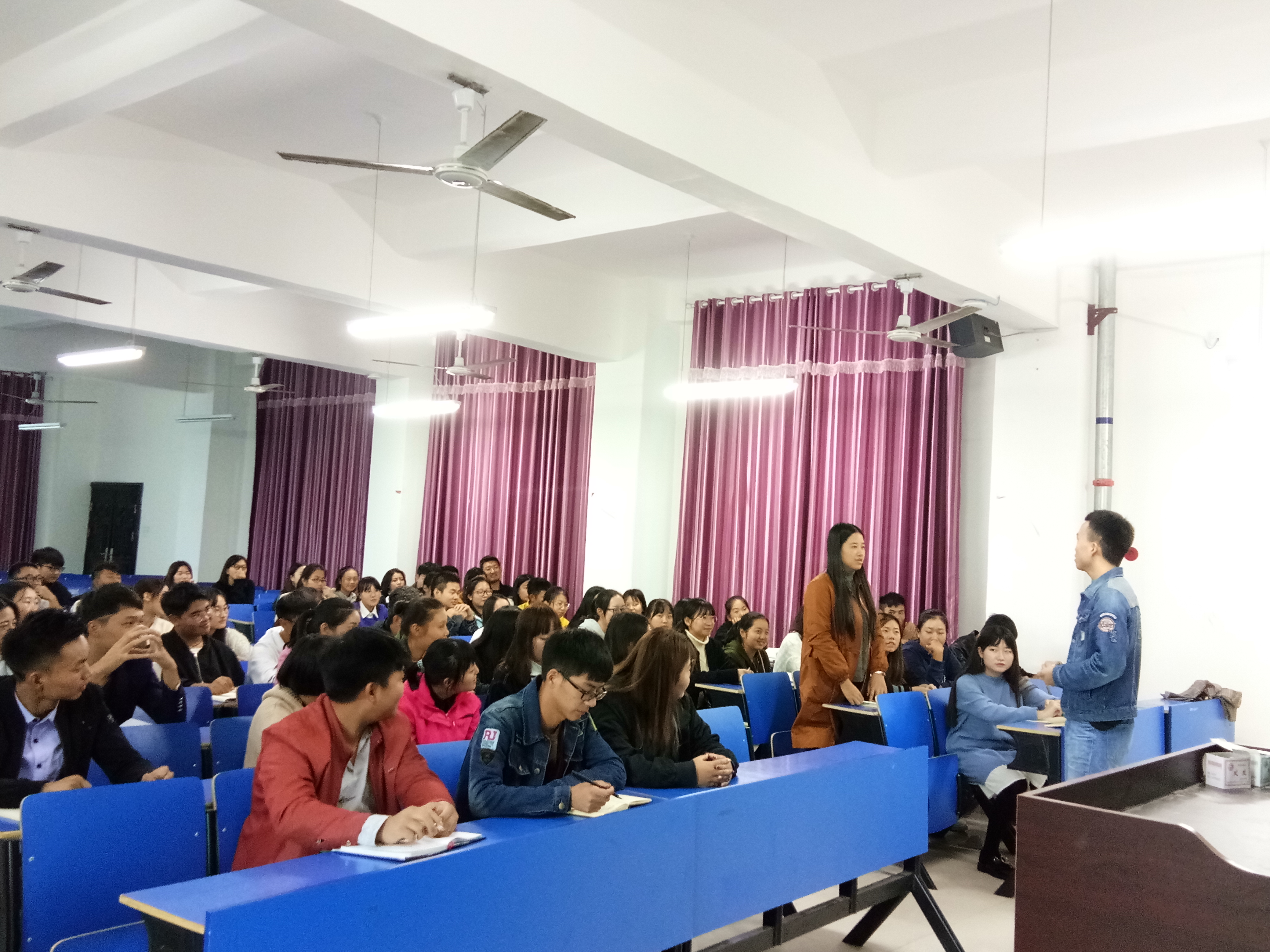 首先由程单老师上台介绍自己,并向各位提出问题进行互动。他就近期经管系活动的热情度及个人素质的提高和培养展开发言,对学生会干事和学生会未来充满期待。接着主席张妍对十月份整体活动做了大体安排,也对学生会各干事提出了自己的要求和寄语。最后团委书记章妍强调了身为干事的责任感。
