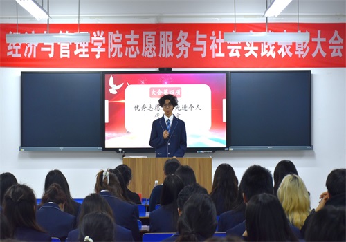 (经管学院 杨鼎)为表彰先进、传递志愿服务精神,4月2日下午,经济与管理学院于一教207教室举行志愿者服务与社会实践表彰大会,党总支书记王春柳、分团委书记徐凡参会。