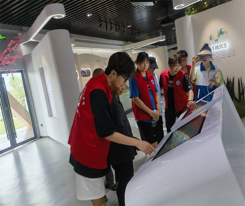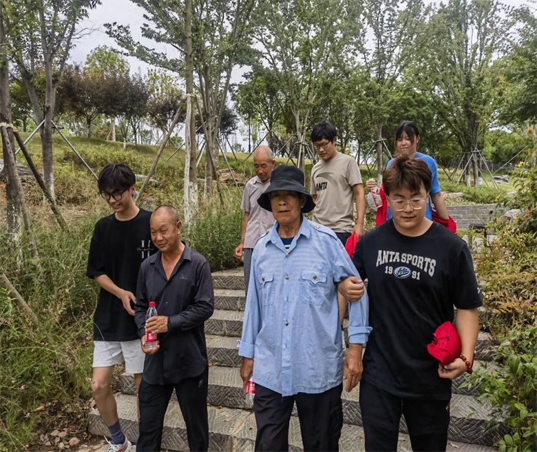 在公园内,老人们被眼前的美景深深吸引。他们沿着蜿蜒曲折的小路漫步,欣赏着绿树成荫、花团锦簇的景观,呼吸着新鲜的空气,脸上洋溢着幸福的笑容。在智慧健康养老服务与管理专业师生的陪伴下,老人们还参观了园内的展厅,了解了襄水源的历史文化和风土人情。
