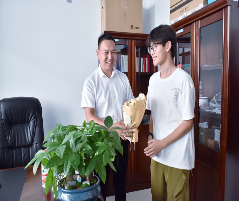 教师节当天,教室黑板上写下了同学们对老师的感恩祝福,上课前全体学生向教师送祝福语,并由学生代表将一束束饱含情意的鲜花和祝福卡片赠送到老师们手中,老师们接过鲜花和祝福卡,脸上洋溢着幸福的笑容,纷纷表示此次活动让他们感受到了同学们的敬爱,同时也激励着自己以更高的热情和更坚定的信念投身教育事业。同时,学院党总支书记王春柳带领学生向学校领导赠送节日祝福和鲜花,对一直关心学生成长的校领导表达感恩之情。
