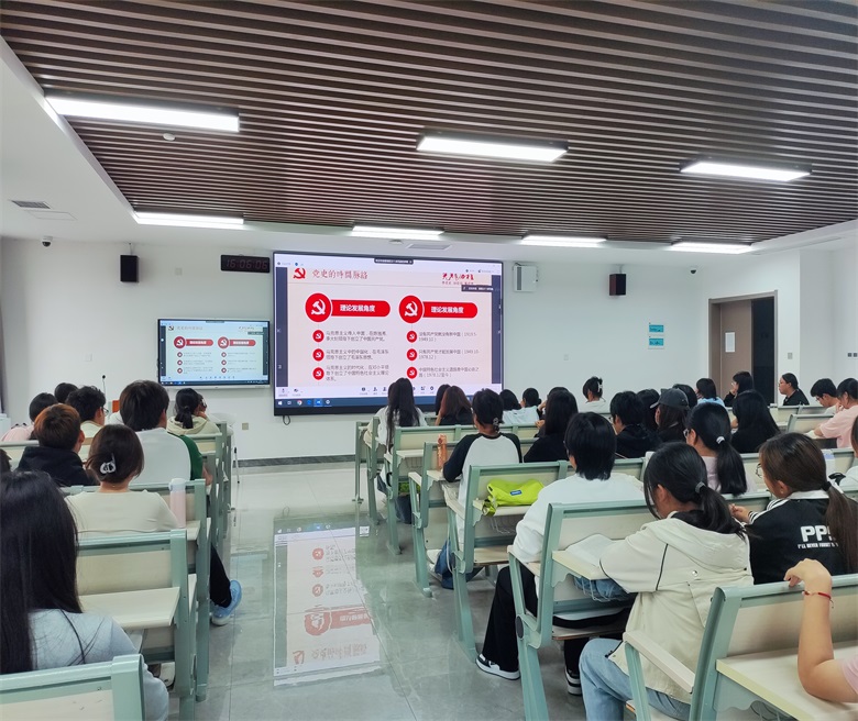 会议伊始,李明翔以党的光辉历程为切入点,主要围绕党史的时间脉络,从理论发展角度深入剖析了中国共产党的诞生和发展。李明翔向同学们讲述了李大钊和陈独秀两位伟大人物如何领导创立了中国共产党、毛泽东思想中的马克思主义中国化以及邓小平理论中马克思主义的时代化等要点。接着,李明翔将党的历史分为三个阶段,用历史经验向同学们说明中国共产党领导是历史的选择,同时也是人民的选择。会议最后,他寄语全体新生,要从党史中汲取磅礴力量,砥砺信念之基,勇担历史重任,让青春在强国建设的伟大征程中绽放出绚丽的光彩。