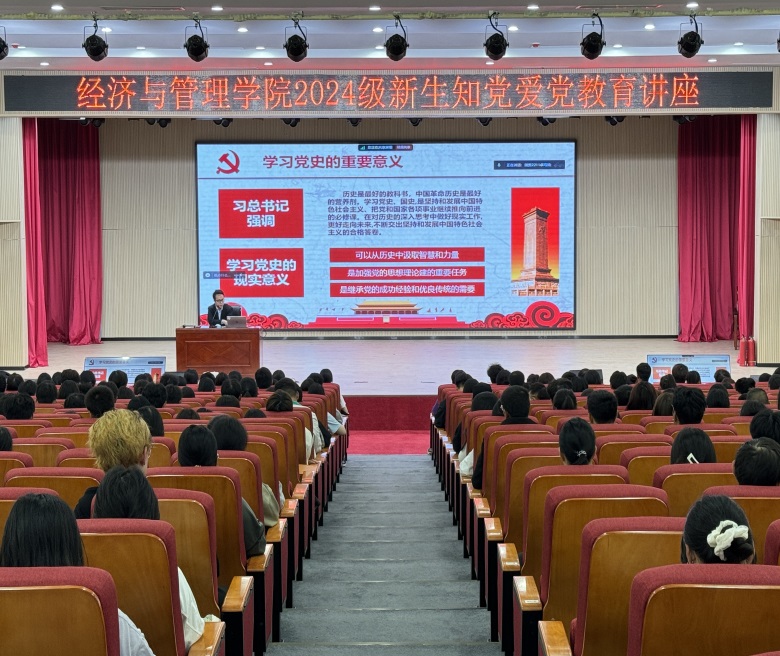 (经管学院 熊亚)为做好2024级新生入学教育,引导青年学子听党话、跟党走,10月10日下午,经济与管理学院邀请马克思主义学院副院长李明翔在大学生活动中心三楼报告厅开展“光辉历程,不忘初心”为主题的知党爱党教育讲座。经济与管理学院全体大一新生参加,东津校区的同学同步线上参会。