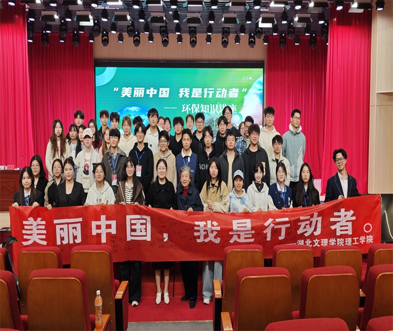 (经管学院 谢鑫海)4月1日,我们成功举办了一场以“美丽中国我是行动者”为主题的环境保护知识讲座。活动特邀“环保奶奶”——自然之友襄阳小组组长运建立女士担任主讲人,襄阳市社会工作部科长邓菊红、襄阳市老干部局老干部科长孔红霞、经济与管理学院党总支书记王春柳及400余名学院师生共同参与,现场氛围热烈而温馨。