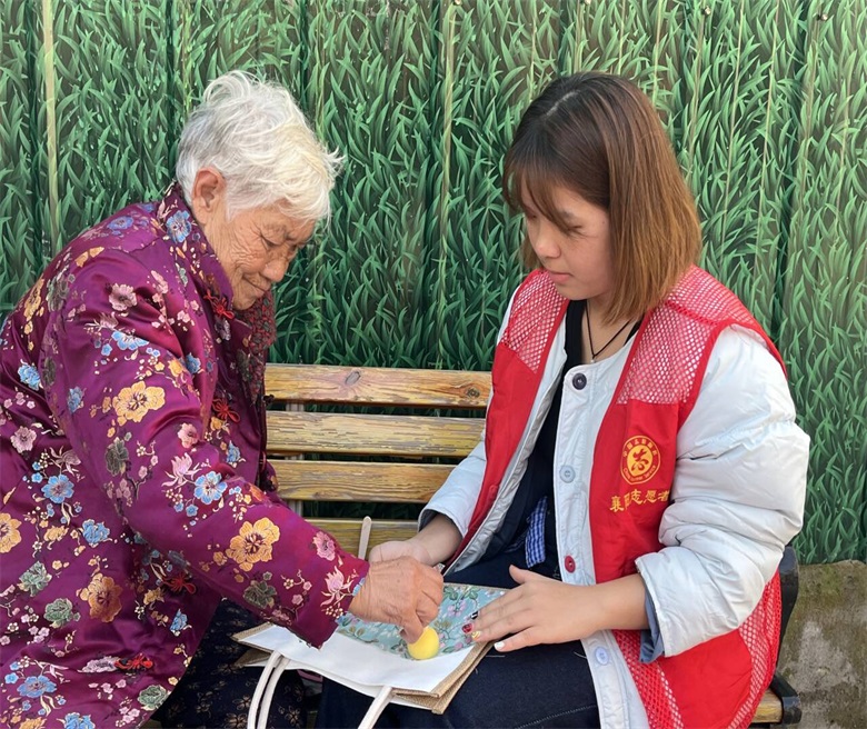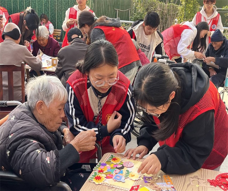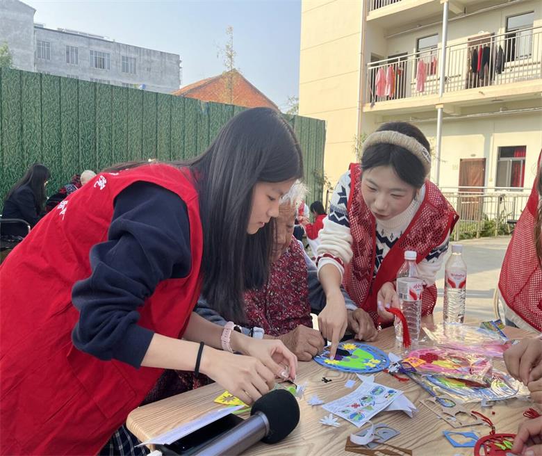 在趣味十足的“报纸酷跑”中,志愿者们化身热情啦啦队,为参与的长者呐喊鼓劲,加油声与欢笑声此起彼伏,传递着积极的活力与友好的竞赛精神。香囊制作区域,志愿者们穿针引线,精心制作饱含祝福的香囊送到老人手中,缕缕药香承载着安康的祈愿。在创意无限的蝶古巴特帆布包DIY制作环节,志愿者们耐心讲解步骤,执手相教,与爷爷奶奶们共同沉浸在创作的乐趣中,一件件充满个性的作品在合作中诞生。