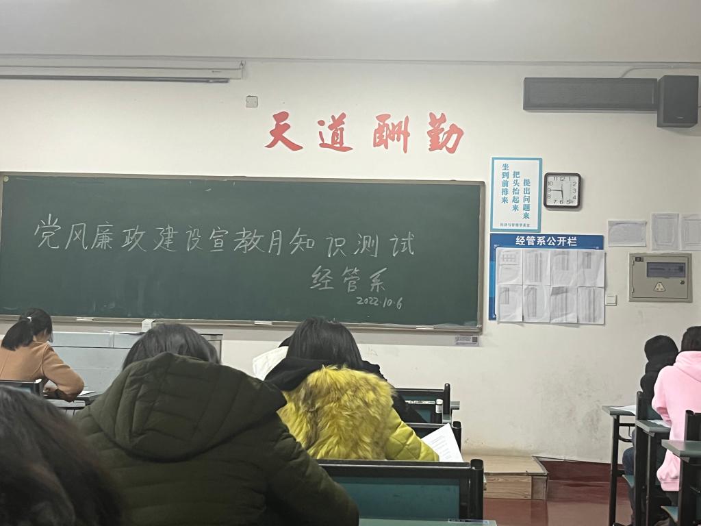 (经管系 周晓桥)为落实我们“党风廉政建设宣传教育月”有关工作安排,10月6日下午,经济与管理学系在4教308教室开展党纪法规及廉政知识测试,全体教职工参加集中测试。