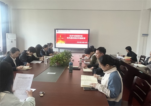 会议由经济与管理学系教工党支部纪检委员钟会荟组织,领学中共湖北省委教育工作委员会文件《省委教育工委关于认真做好高校深化党员干部纪律教育工作的通知》和习近平在二十届中央纪委二次全会上发表重要讲话精神,以及2023年9月23日湖北省纪委监委通报6起典型案例,通过文件学习和警示案例,加强经管系教职工团队党风廉政建设。会议最后,全体教职工观看《清廉中国》党风廉政警示教育片,钟会荟总结此次会议精神,传达教工党支部近期学习任务。
