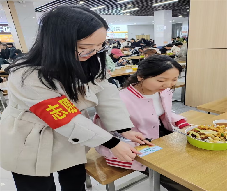 活动过程中,教工党支部充分发挥先锋模范作用,将志愿服务与育人实践相结合。在督导之余,教师党员还与食堂工作人员深入沟通,了解餐饮管理流程及学生用餐偏好,为进一步优化校园餐饮服务建言献策。学院党总支书记王春柳表示:“这次活动不仅是弘扬雷锋精神的实践,更是一次生动的劳动教育课。通过与学生面对面交流,我们感受到了新时代青年对文明风尚的认同,也更加坚定了党员服务师生的责任担当。”