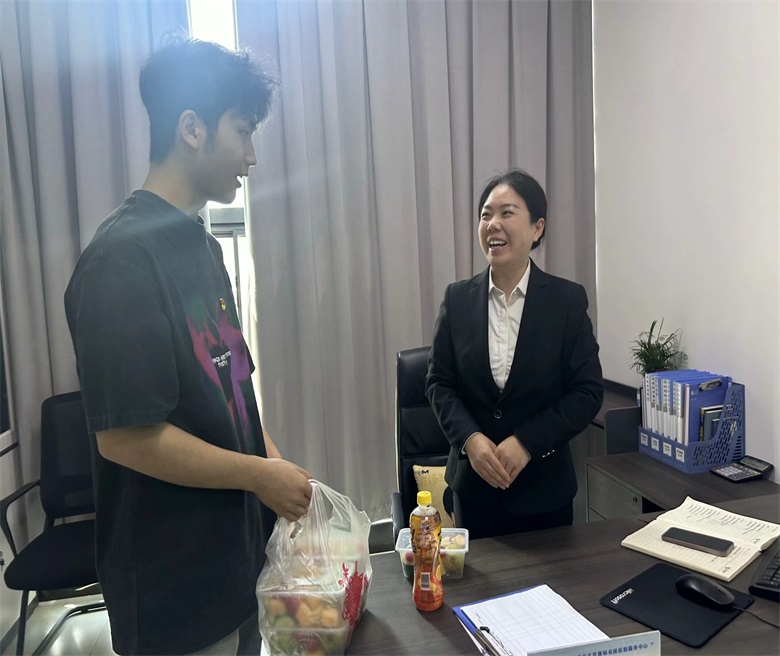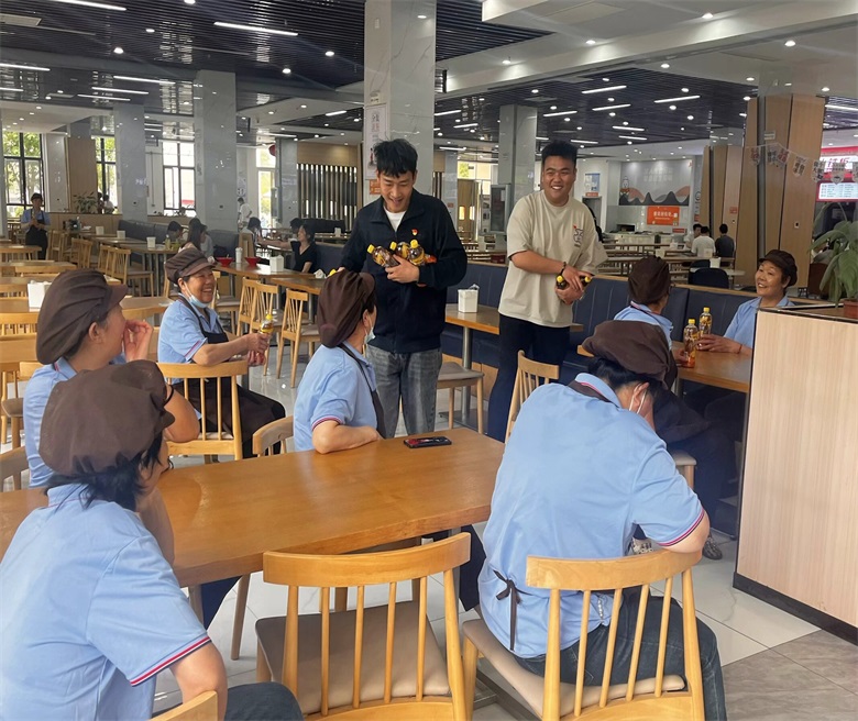 除了赠送新鲜水果、清凉饮料,学生党员还沉浸式参与了校园劳动者的日常工作,进行全方位的体验。在学校食堂协助食堂阿姨清理餐盘、在学校门口跟随门卫叔叔维持校园秩序、在学生宿舍协助宿管阿姨检查安全设施,排查潜在的安全隐患。学生党员付诗琴表示:“通过此次亲身体验,我深刻认识到校园劳动者的工作并非表面上那么简单,每一项工作都需要高度的责任心。他们为我们营造了良好的校园环境,这种默默付出的精神值得我们每一位同学学习与尊重。”