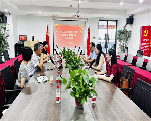 2家律师事务所对胡阳一行的到来表示欢迎,在洽谈会上,胡阳分别向负责人介绍了学院的基本情况、学科建设和人才培养情况,以及法学专业学生在实习、就业中存在的问题和面临的挑战,希望两家律师事务所与经济与管理学院深入合作,共同培养复合型法律人才。湖北真武律师事务所和湖北瀛楚(襄阳)律师事务所也分别展示了律师事务所的发展历史、经营规模以及人才需求等方面的情况。会上双方围绕法学专业实习实训规范化、法律职业考试、就业认知等方面展开深入探讨与交流并达成共识。