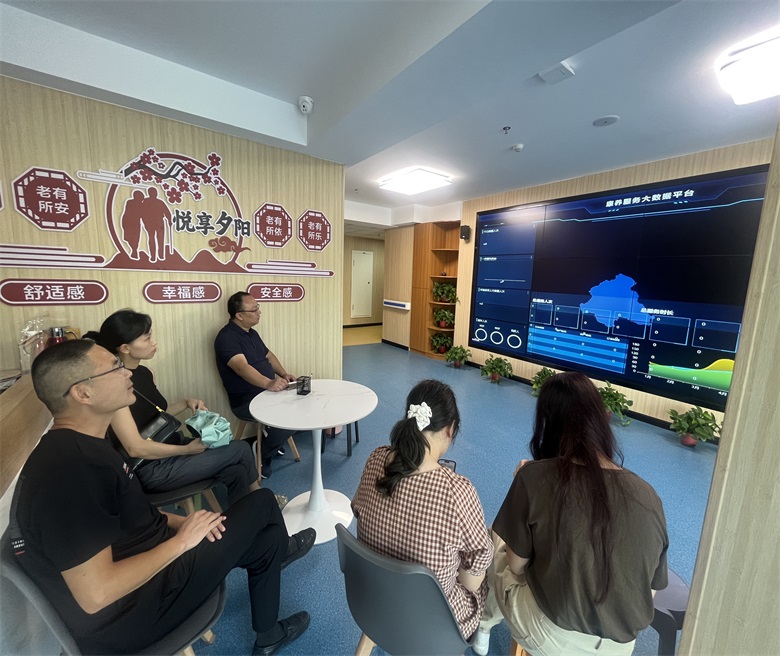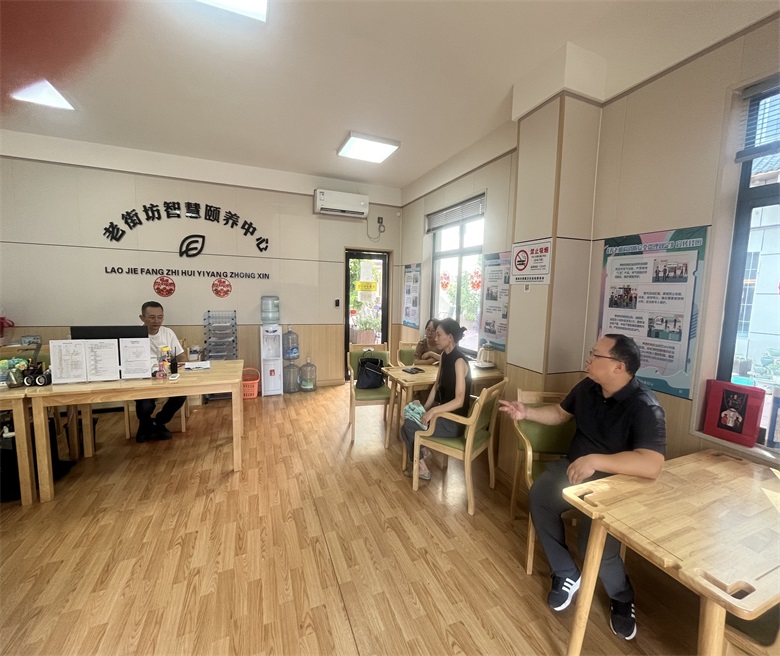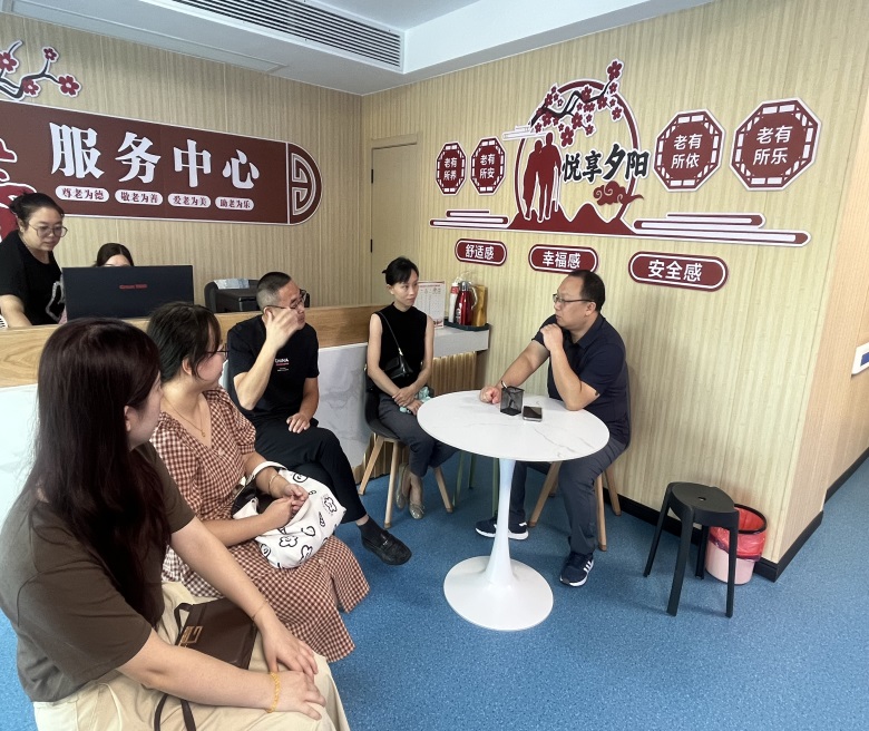 胡阳一行参观了老街坊智慧颐养中心的场地布局和老年人活动中心,院长周沛宇详细介绍了老街坊智慧颐养中心的经营理念、结构设置、养老护理人员配比及人才需求等情况,双方就养老专业课题研究、养老行业先进理念、构建产教融合产业学院、接纳专业实习学生及建立校企双导师制进行了深入交流,意向共创校外实践教学基地。