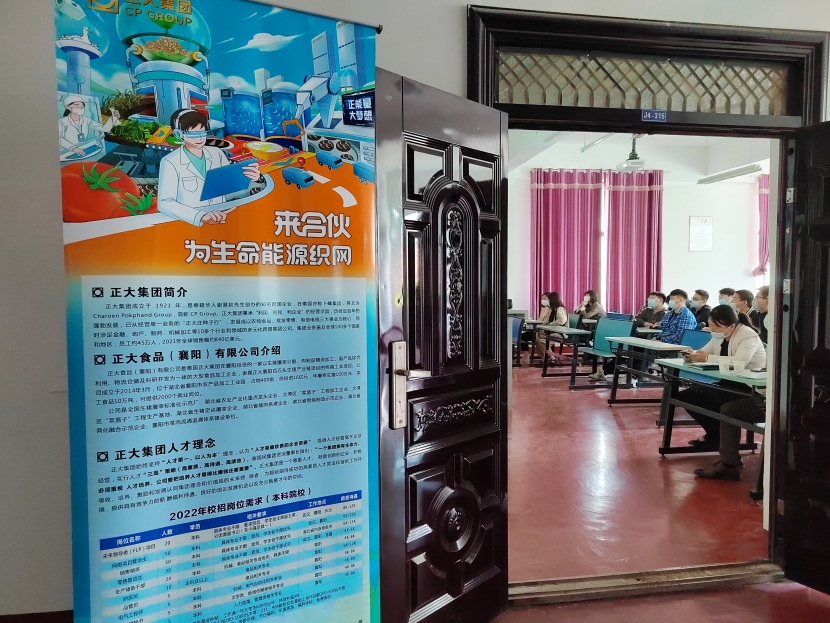 (经管系 吕星 朱靖)4月19日,正大食品(襄阳)有限公司在4教315教室对我系学生进行专业实习宣讲会。会上,正大人力资源部章斌和张孝忠两位经理介绍了企业发展概况和目前岗位的需求,并对同学们感兴趣的实习问题耐心解答,宣讲后进行了现场面试。