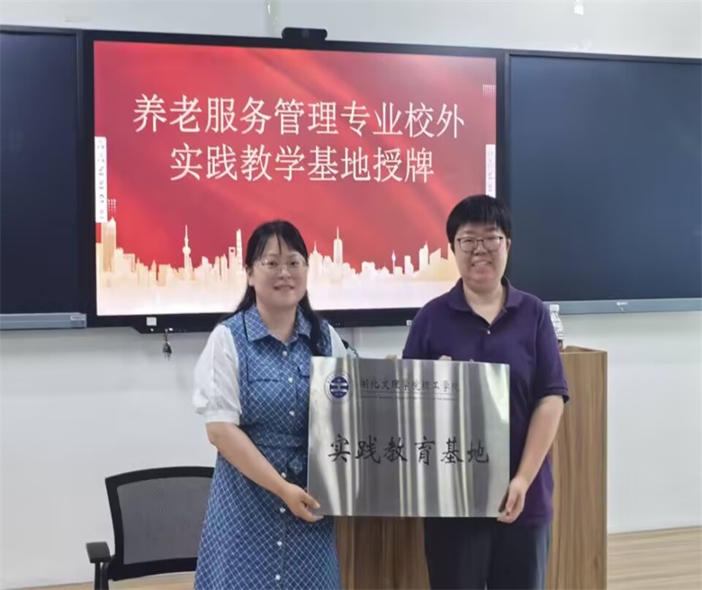 讲座结束后,襄阳市樊城区春和瑞怡老年公寓作为我们养老服务管理专业校外实践教学基地进行授牌仪式,曹雪与学院副院长朱靖合影留恋。
