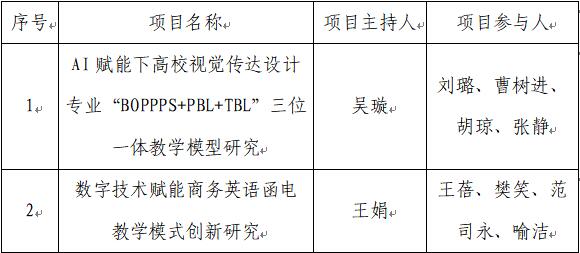 (教学科研部 贾珊珊)近日,湖北省教育厅公布了2024年度省级教学改革研究项目立项名单,我们有两个项目获批立项,其中一般项目1项,大学英语专项1项。截至目前,我们共获批省级教学改革研究项目9项。