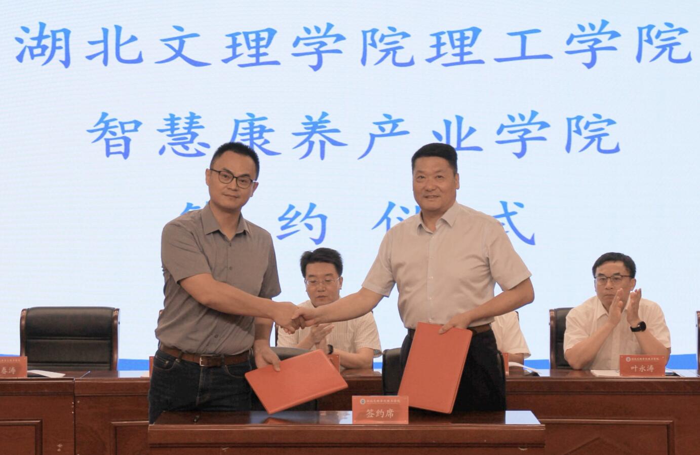 紧接着,智慧康养产业学院和国防科技工业产业学院的签约仪式正式举行。校长杨海浪分别与上海联代健康科技有限公司代表以及襄阳市国防科技工业协会代表签署了正式合作协议。