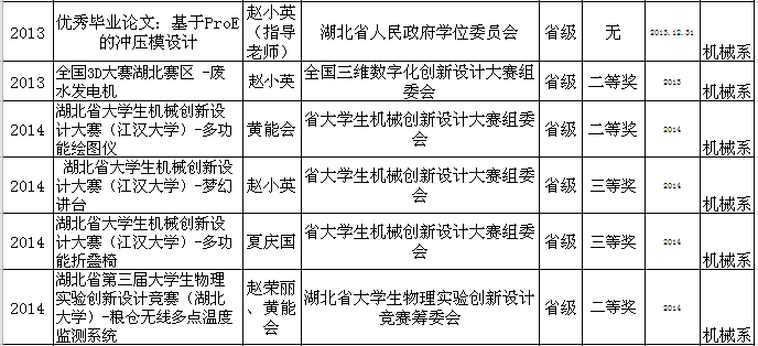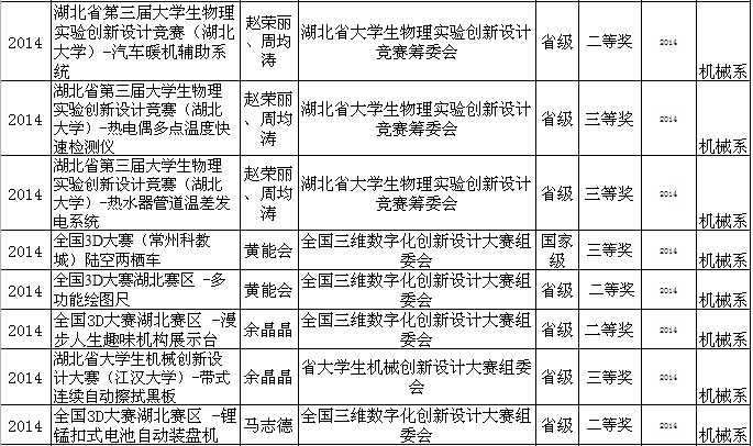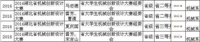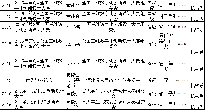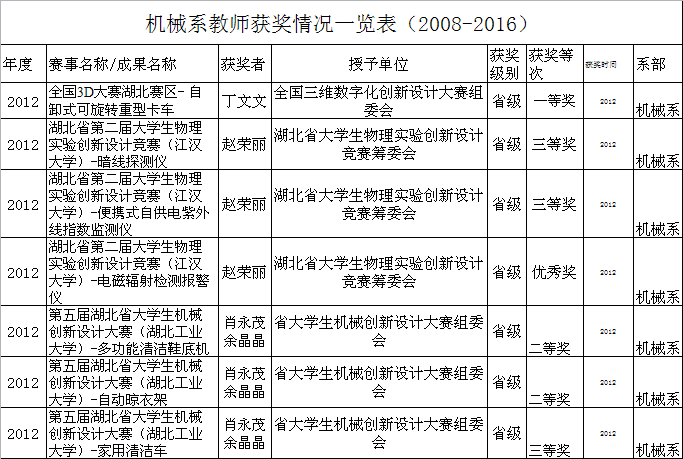 机械系教师获奖情况一览表(2008-2016)
