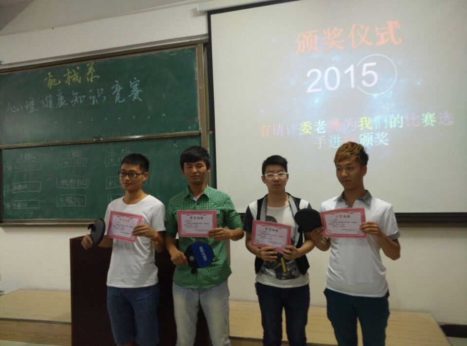 为营造良好的大学生心理健康教育氛围,增强大学生学习心理健康知识的热情,引导学生培养积极向上的心态,提升学生心理素质和处理心理问题的能力。5月21日晚六点半机械系在一栋教学楼307教室隆重举行“心理健康知识竞赛”。整个活动现场气氛活跃,同学们兴致高涨,乐在其中。