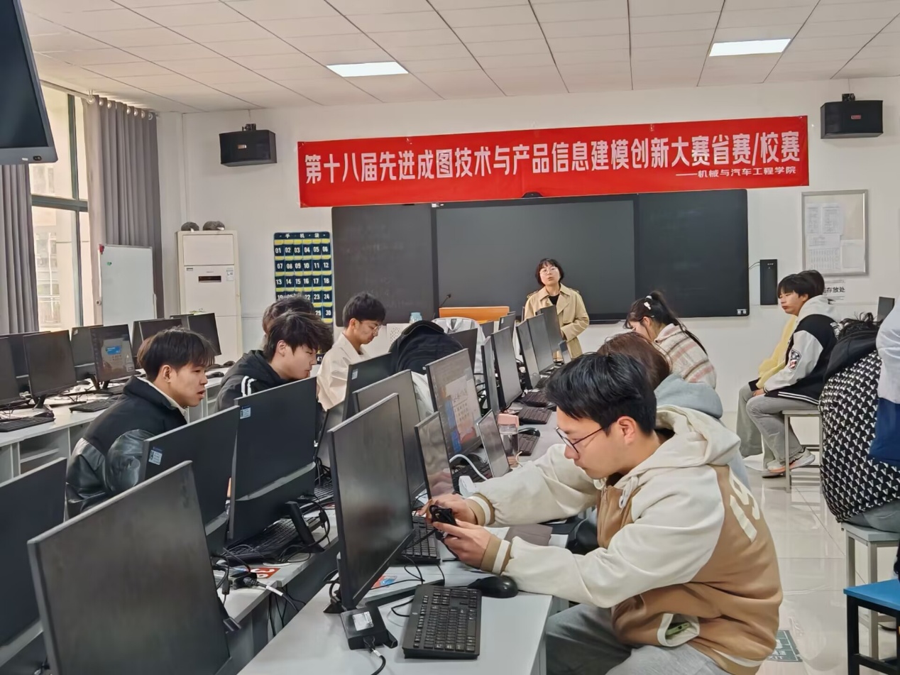 (机械学院 梁国庆)为培育大学生的动手实践与自主创新能力,提升学生绘图专业水平,机械与汽车工程学院于 2025 年 3 月 30 日下午在机械楼 204 和 217 教室举办了第十八届全国大学生先进成图技术与产品信息建模创新大赛校赛。此次比赛吸引了近百名学生参与。