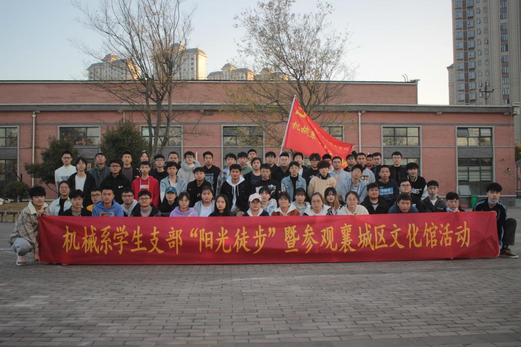 (机械系 胡旭涛)为了庆祝中国共产党成立100周年,扎实推进党史学习教育,机械系学生支部于11月23日开展“传承红色基因,弘扬革命精神”阳光徒步至襄城区文化馆并进行参观学习的活动。