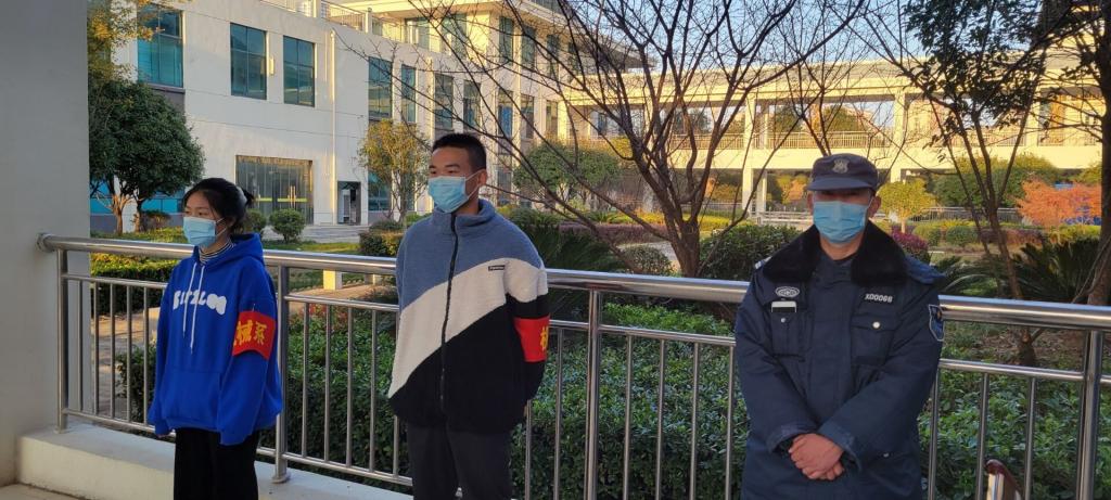 14名入党积极分子分为四组分别前往岗亭、校门口、食堂门口以及工地,向这四个地方坚守执勤的保安叔叔送去棉袜,并向保安叔了解工作要点后开始体验校园保安工作。监督进食堂的师生戴口罩、登记进出校门口人员的信息等,同学们在亲身体验了校园保安工作后才深切感受到,看似简单平凡的工作却包含辛勤的汗水,校园的和谐稳定离不开这些默默奉献的保安人员。