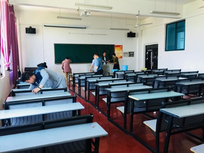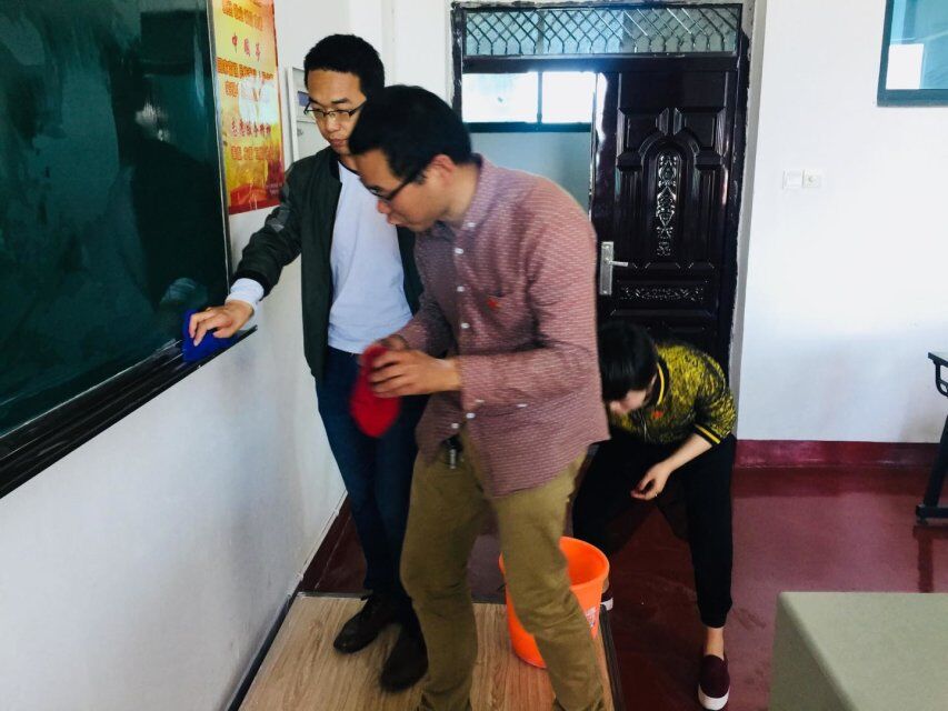 教室是老师们是传道受业解惑之所,也是学生汲取知识的场所,教室的环境卫生直接影响到老师和学生们的心情,构建良好的教室卫生环境,以往都是后勤人员和学生们的事。但是机械系的教师们,一直以来作为学生们心目中的表率,在服务师生、服务校园方面也不甘落后,这次机械系的党员教师们撸起袖子,充分发挥不怕脏、不怕苦、不怕累的精神,把一间间教室打扫得锃锃亮。