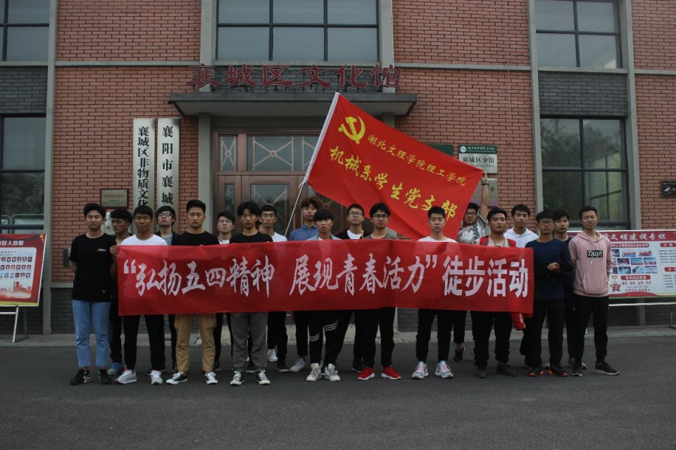 (机械系 吴勉)为纪念“五四运动”100周年,进一步激励广大青年学子继承和发扬五四精神,进一步推进党建带团建活动,增强党组织凝聚力,4月23日,机械与汽车工程系学生支部举办了以“弘扬五四精神 展现青春活力”为主题的徒步共前行活动,学生支部书记全老师带头与学生们从学校大门口出发,徒步前行到到三桥头襄阳文化馆参观。