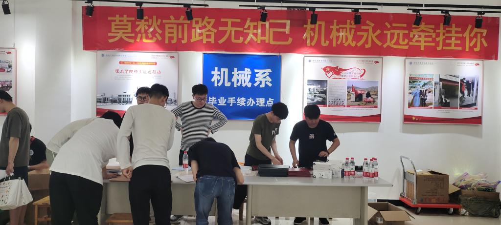 在6月15日--17日这3天的毕业生离校之际,根据我系毕业生工作的实际情况,组建了一只由党总支副书记、辅导员、学生党员和积极分子组成的志愿服务队伍,机械系30余人积极投入到毕业生离校的志愿服务中。毕业生离校手续工作站点的布置、办理离校手续、发放毕业证学位证、纪念品等工作有条不紊的进行,为103名毕业生的顺利离校提供了优质的志愿服务。