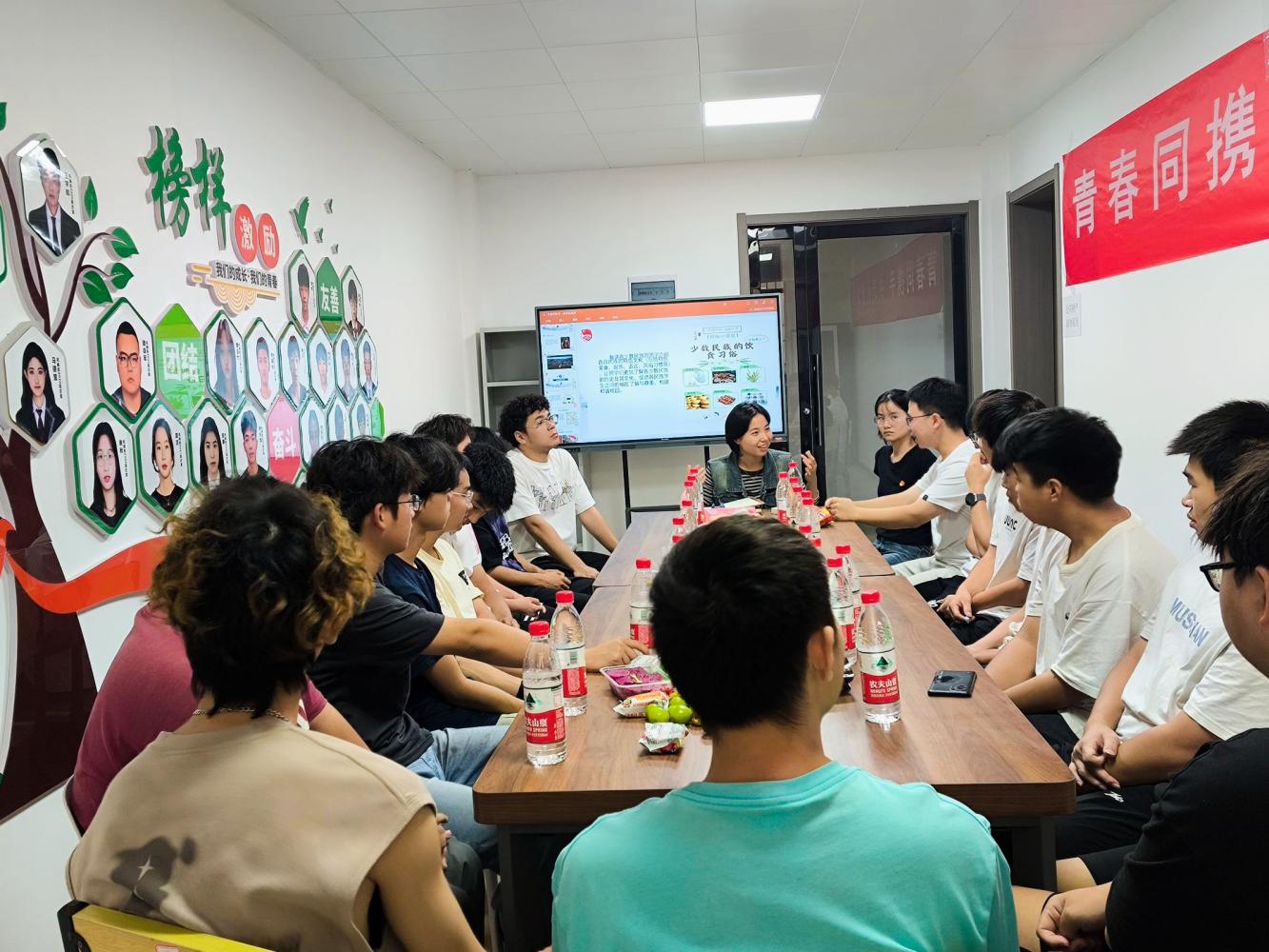 为加强沟通,增进了解,活动还设置了互动环节。现场各民族同学代表们围坐在一起,热情洋溢地分享着各自民族的特色文化、传统习俗与独特风情。从别具一格的民族服饰,畅谈到精彩动人的特色歌舞、丰富多彩的特色节日、风俗习惯等,同学们其乐融融地畅聊特色文化。