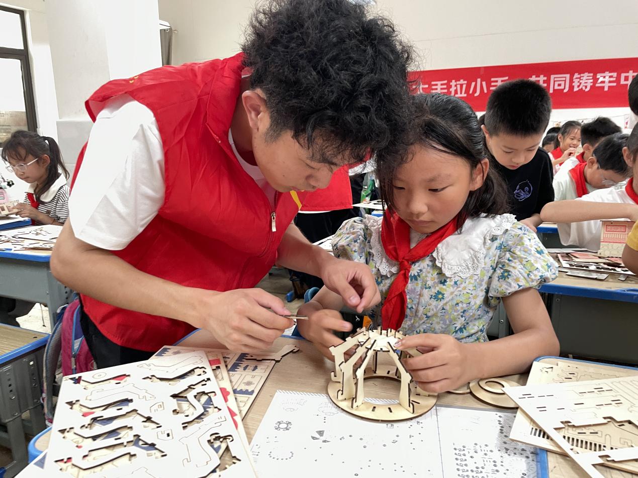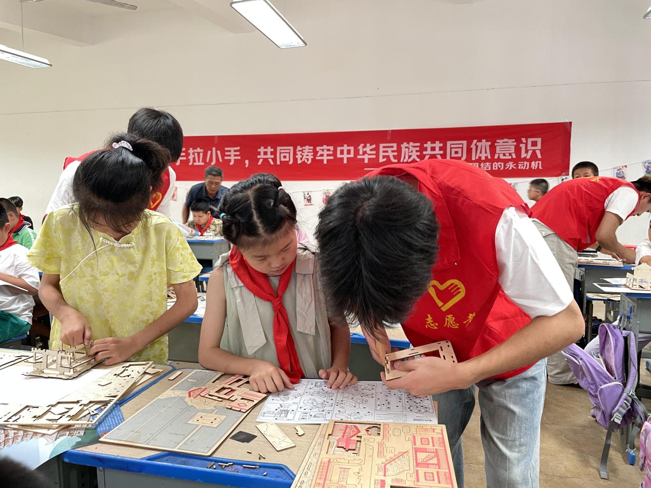 在民族技艺展示环节,志愿者们运用积木,复刻了吊脚楼、蒙古包等少数民族传统建筑模型,并详细讲解其中的机械原理和结构智慧。“原来古老的建筑里藏着这么多科学知识!”小朋友们在动手拼接模型的过程中,既领略了民族文化的魅力,也感受到了各民族共同创造的科技智慧。