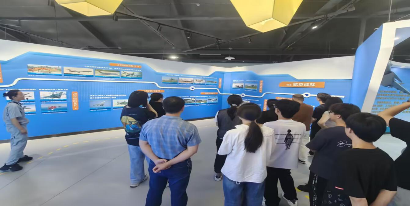 工作人员详细讲解了飞机维修的工艺流程、质量管控标准以及创新技术的应用,同学们认真聆听,并不时提出问题,现场互动热烈。大家认真的、深刻的了解到了我国航空发展史,感受到了军工生产中对精度和质量的极致追求,深刻体会到“大国工匠”精益求精、追求卓越的精神内涵。