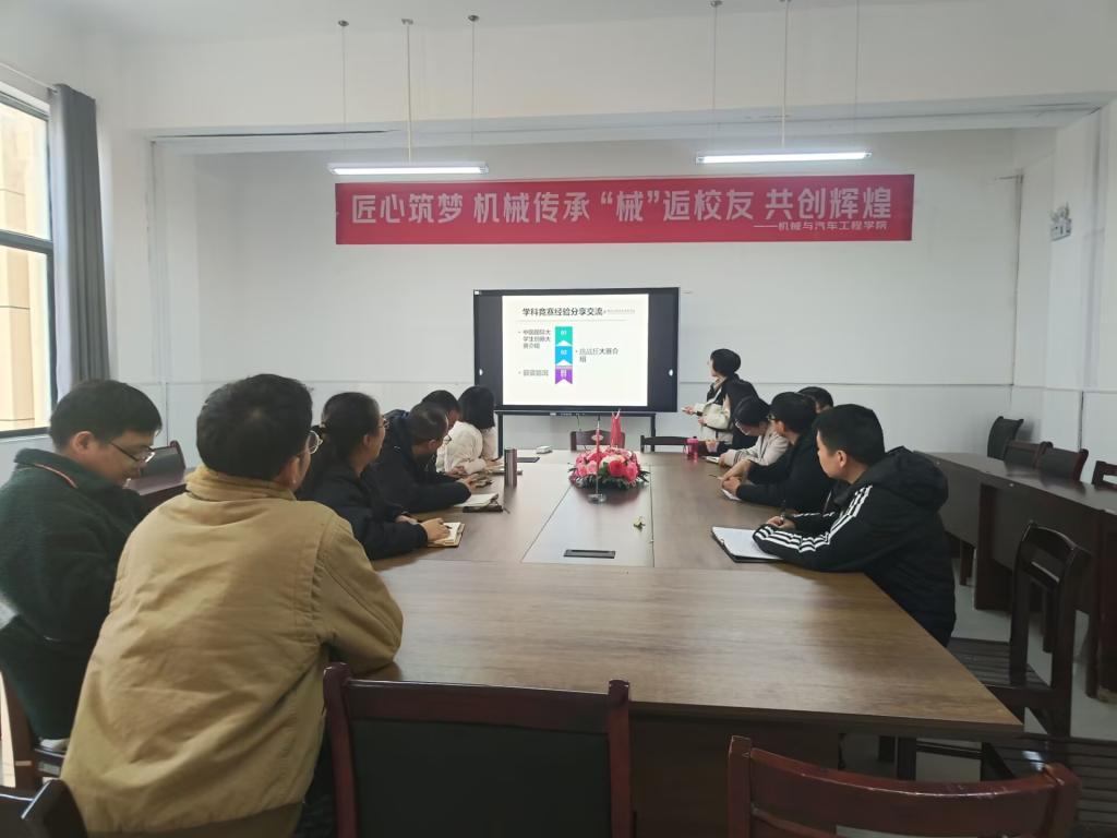 (机械学院沈彬彬)为进一步加强我院师生对“挑战杯”和“中国国际大学生创新大赛(“互联网+”)”赛事的了解和参与积极性,营造良好的科研及竞赛氛围,2024年11月28日下午邀请我院督导组长刘呈呈在机械楼208会议室举行“‘赛研结合’提升教师科研能力”为主题的讲座。刘呈呈以第1指导老师指导中国国际大学生创新大赛获得省级铜奖2项、湖北省“挑战杯”大学竞赛三等奖 6项,另外主持省教育厅项目4项、省高等教育学会重点项目1项、市级项目4项、校级项目2项、主编教材2部、发表SCI论文1篇,获得发明专利授权1项、实用新型专利授权10多项等。