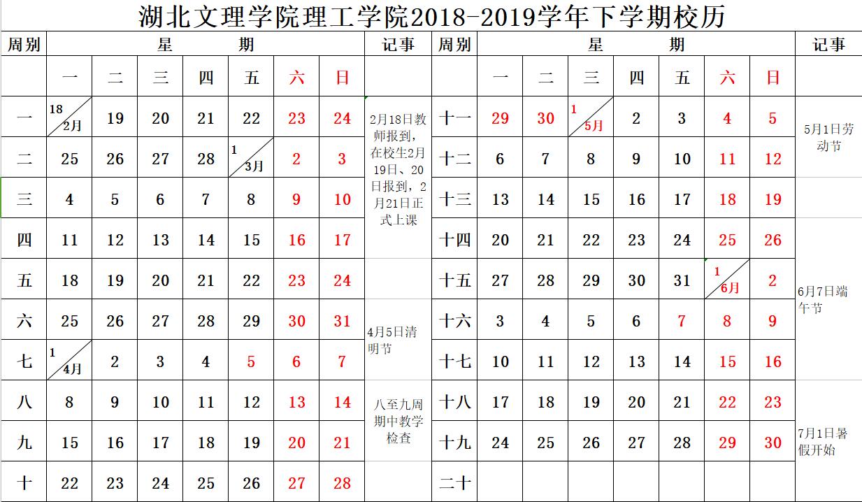 2018—2019校历