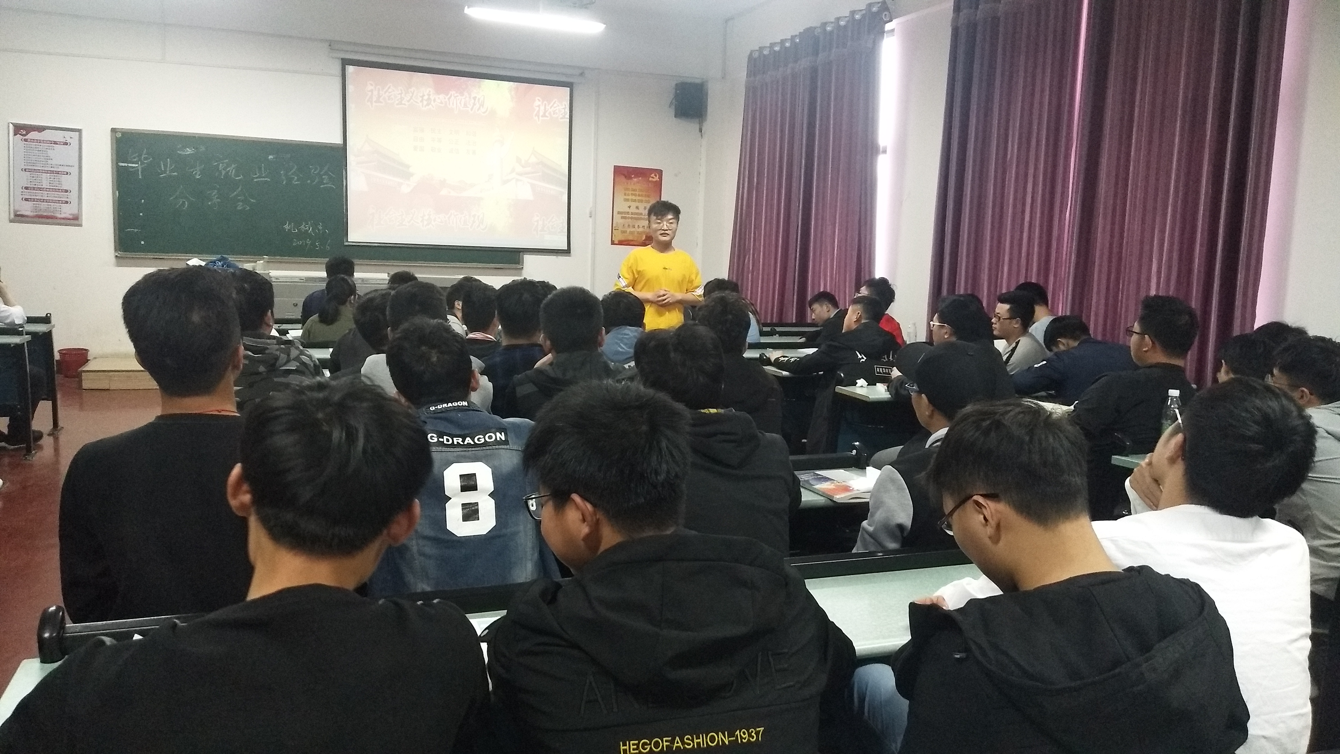 (通讯员 全春艳)韶华似水,转眼间一年一度的毕业季如约而至。为了帮助16级的同学们更好地了解就业形势,便于同学们获取更多就业信息,解答同学们的就业疑惑,帮助同学们树立正确的就业观念,使同学们在就业路上走得更加顺畅,2019年5月6日下午4点机械系16级全体学生在4教415教室举行2019届毕业生就业经验分享会。本次毕业生就业经验交流会由辅导员全春艳老师主持召开,邀请2019届本科机制专业的李军、陈彦基、王志强同学来做经验交流。