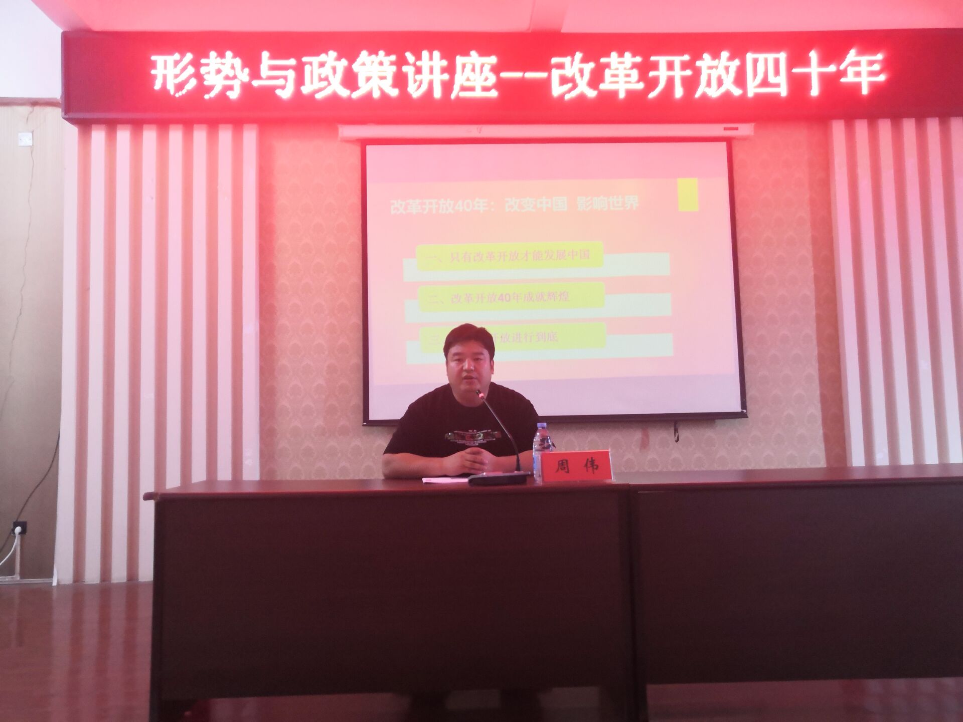 (通讯员 柳祥伟)为加强同学们对于改革开放以来我国所取得辉煌成就的理解,深刻认识到我国改革开放四十年来的艰辛历程,5月23日下午,机械与汽车工程系2018-2019学年形势与政策课“改革开放四十周年”在J1-104教室进行。本次讲座邀请到伟德bv1946官网院长助理周伟,为17级、18级机械学子讲解了改革开放四十周年以来中国的发展历程。