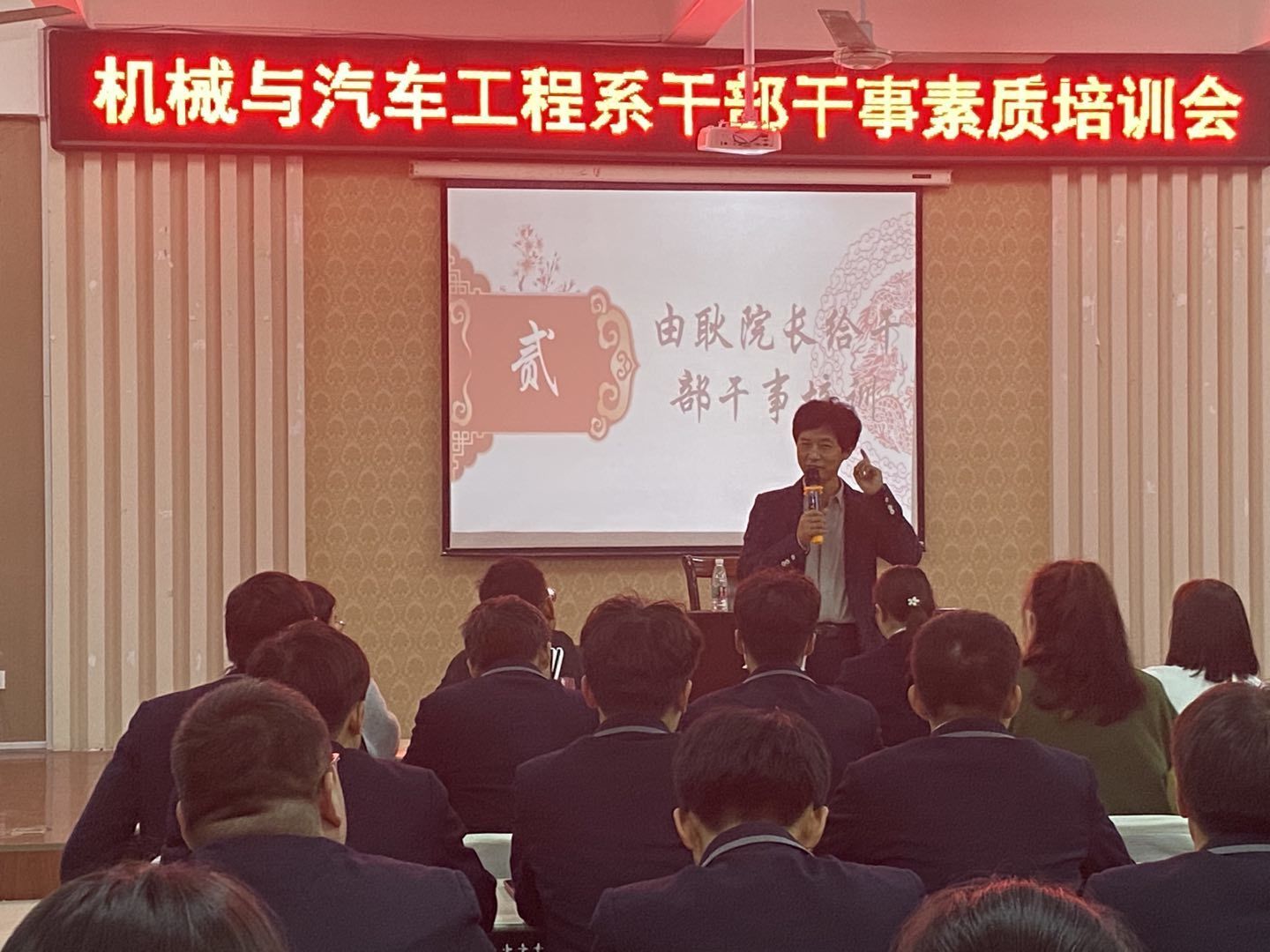 (机械系 胡旭涛)为加强学生会干部干事队伍建设,机械与汽车工程系于11月16日邀请了常务副院长耿帮才同志在一教104报告厅为学生干部干事进行了素质培训。