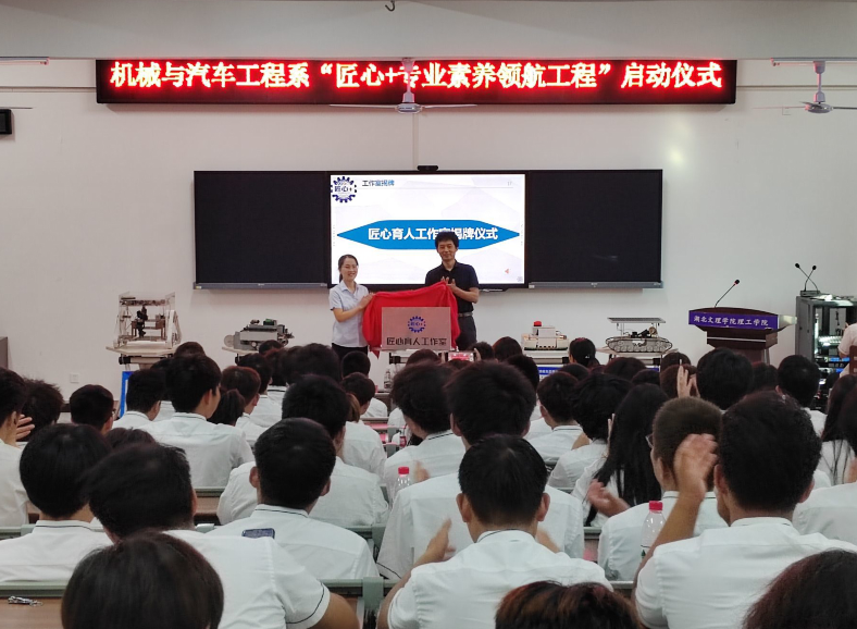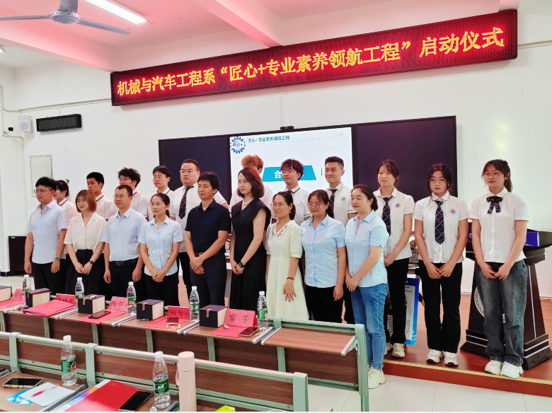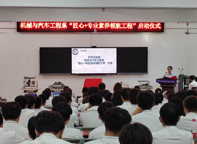 仪式伊始,机械系党总支副书记刘晓君宣读《伟德bv1946官网机械与汽车工程系“匠心+专业素养领航工程”方案》,详细介绍了机械系该工程实施的目标思路及方法过程——“匠心+专业素养领航工程”围绕高校立德树人根本目标,结合机械系专业特色,以培养学生科学素养和人文素养为目的,增强学生科技创新意识、科技创新能力,提高学生科研能力、扩宽学术视野。该工程通过“匠心+精神领航”、“匠心+技能领航”系列活动,将思政育人和专业素养培养相结合,促使学生内修匠心精神、外修技能本领,积极探索具有专业特色的思想政治工作育人新途径,努力培养有家国情怀、有过硬专业技能的时代大学生。