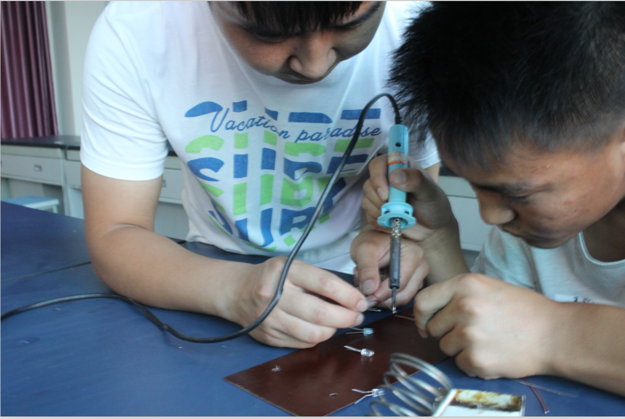 机械系专门为学生课外竞赛和课外实验提供的实验室平台,晚上18点,同学们按时到达比赛地点,由学会干部带领入座。在比赛过程中,同学认真听取操作事项,以及工作人员的建议,仔细观看演示操作,向指导老师和学长学姐请教二极管的工作原理。虽然电工实习这门课程已经结束,但是比赛中,依然感受到了同学们焊接的热情,从晚上六点一直到七点半,大家克服困难,互相帮助,将自己的想法付诸于实践。二极管与导线你缠我绕,组合成了一个个生动的图案。在实践过程中,大家也没有将安全防护抛之脑后,最终,何松、吕斐昊组获得冠军,付英崇、徐国庆组获得亚军,袁单琴、安强组获得季军。