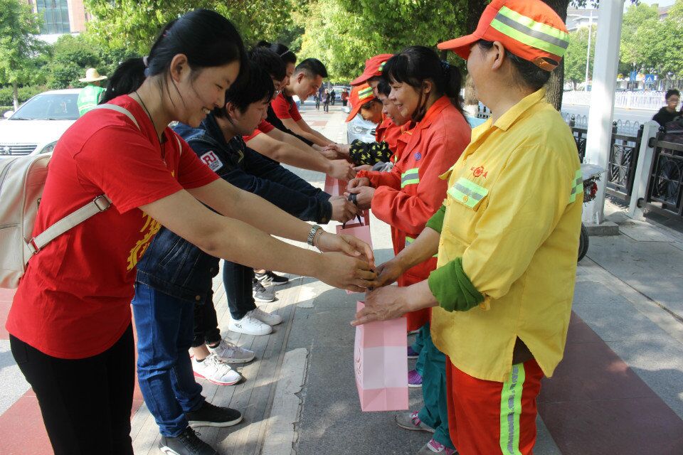 在西街社区党支部负责人及我系学生党支部书记的安排下,党员同志投入道了热火朝天的劳动中来。同学们不怕脏,不怕累,积极主动地到每个角落去捡垃圾,大家互相分工协作,有条不紊。与此同时,部分同学就“关于世界卫生日”这一节日对周围的居民进行了问卷调查。经过一段时间的辛勤努力,每位同学手里的垃圾袋都满了散落在街道上的垃圾,大家看着这干净整洁的街道,脸上都洋溢着欣慰的笑容。最后,大家还把活动前准备好的小礼品赠送给了这里可敬的环卫工人们,并和他们合影留念。