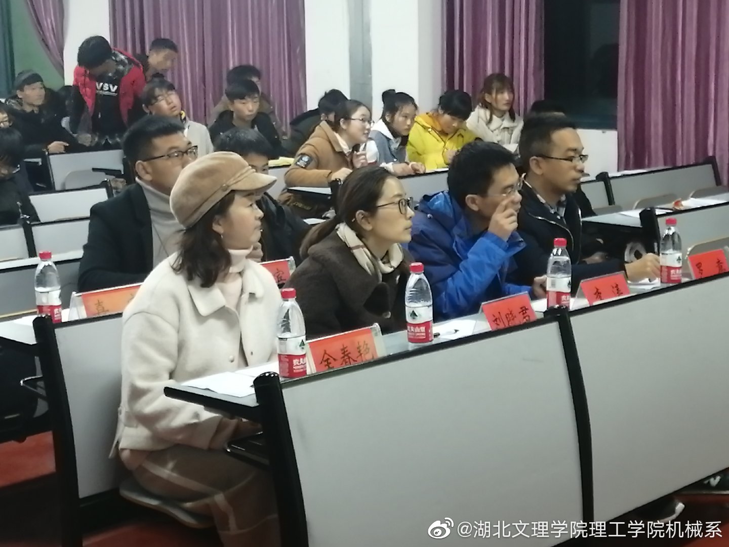 首先,由8位参加主持比赛的同学按照抽签顺序依次进行,由评委老师依次进行打分,主持的内容为每位选手自己准备的2020年新年晚会主持词。期间刘晓君书记点评道选手们的感情很充沛、普通话标准,不足之处在于声音不够洪亮,要是能够脱稿选手们的表现会更好。