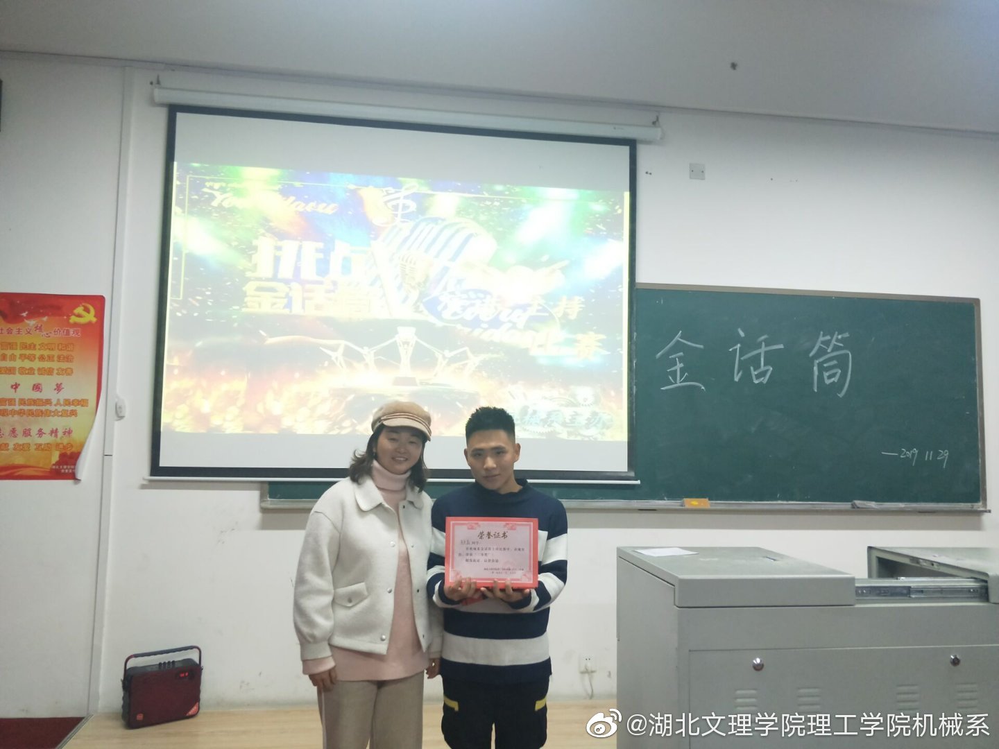 (机械系 张华)为丰富活跃校园的文化生活,提高我系学习的口头表达及语言运用能力,发掘出有潜力的主持和演讲人才,机械系于11月29日在四教410教室举办机械系“金话筒”杯主持演讲大赛。