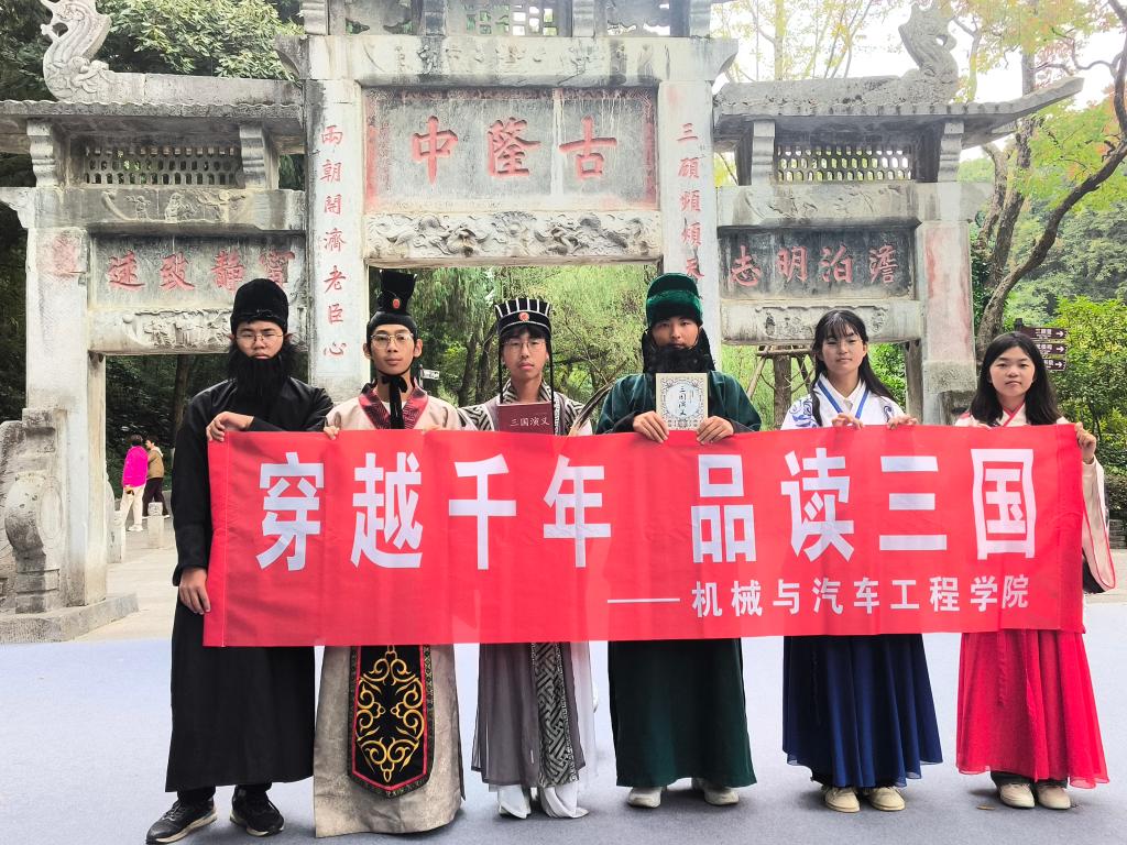 (通讯员 潘美琪)10 月 28 日,历史的画卷在古隆中徐徐展开,一批机械学子身着诸葛亮、刘备、张飞、关羽等特色服装,踏上了一场探寻三国奥秘的奇妙之旅,让三国文化从名著中鲜活地走出,走进了当代青年的心中。