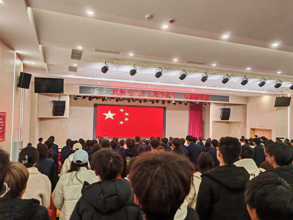 (通讯员 乐心蕾)11月21日,机械学院在大学生活动中心三楼报告厅举办了机械学院十一月表彰大会。学院党总支书记刘晓君及全体辅导员出席大会,第十四届学生会成员、获奖同学参会。