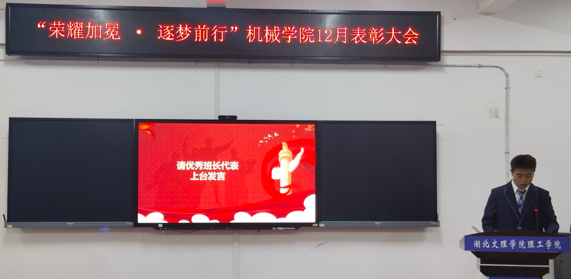 (通讯员 姜文静)为促进机械学院各项学生工作高效率、高质量开展,更好服务学生,12月19日,机械学院在一教105举办了机械学院年终学生表彰大会。学院党总支书记刘晓君及全体辅导员出席大会,第十四届学生会成员、获奖同学参会。