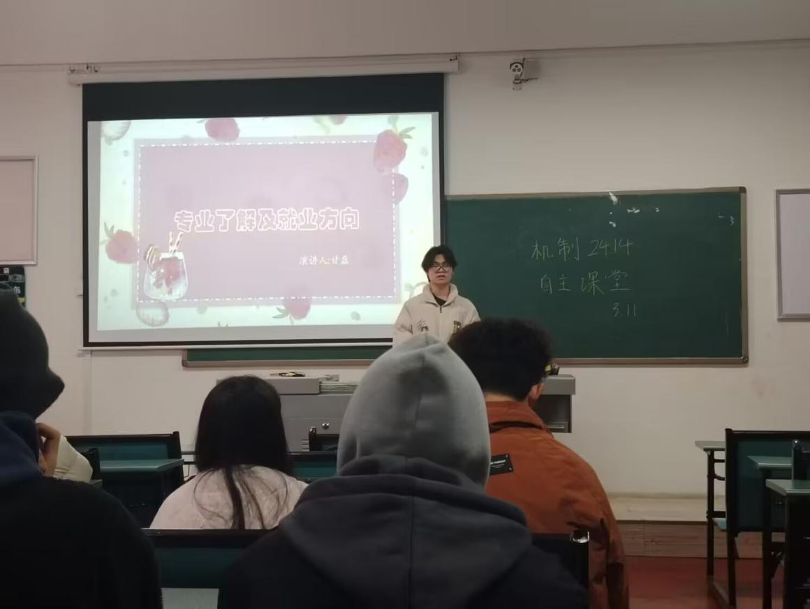 (通讯员 许仕林)为提升学生专业素养、增强团队协作能力,机制2414班于4月7日组织开展第9周自主课堂活动。本次活动以“机械设计制造及其自动化专业的未来展望”为主题,通过小组演讲、多媒体展示与师生互动等形式,深化专业认知,激发学习热情。