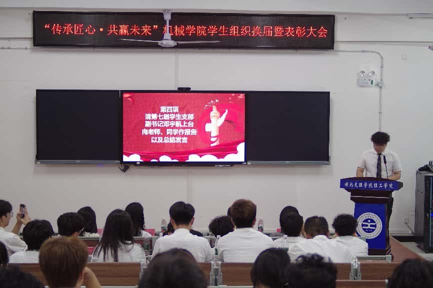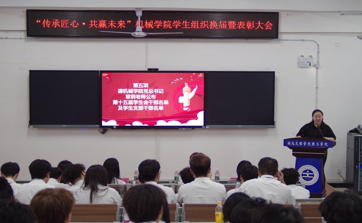 (通讯员杨桂欣)2025年6月12日,机械学院学生组织换届暨表彰大会在一教105报告厅举行。机械学院党总支书记章莉、分团委书记全春艳、学生支部书记马红玲、辅导员代表、全体学生干部以及受表彰人员参会。