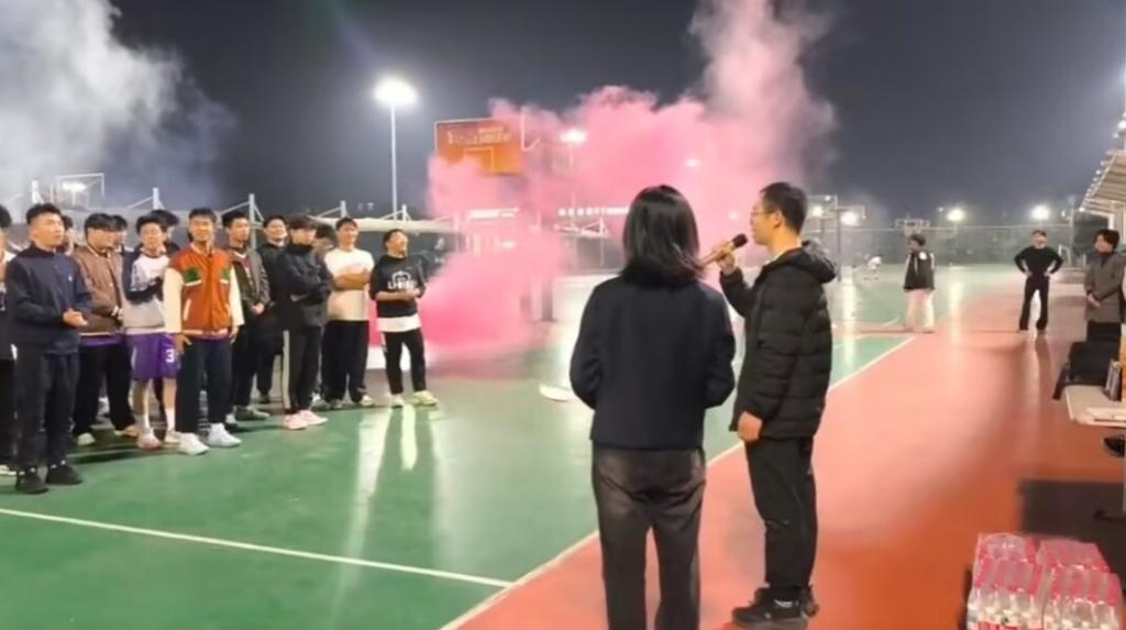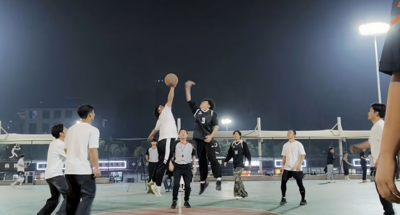 首场是教职工队与学生会队,同场竞技,友好交流。赛场上,老师们从容发挥,用娴熟的传球与稳健的投篮展现运动风采;学生会队员们活力满满,凭借蓬勃朝气积极跑位、勇敢突破。双方秉持“友谊第一,比赛第二”的原则,切磋球技之余更注重交流互动,每一次默契配合都引来阵阵掌声,赛场上洋溢着师生同心、其乐融融的和谐氛围。