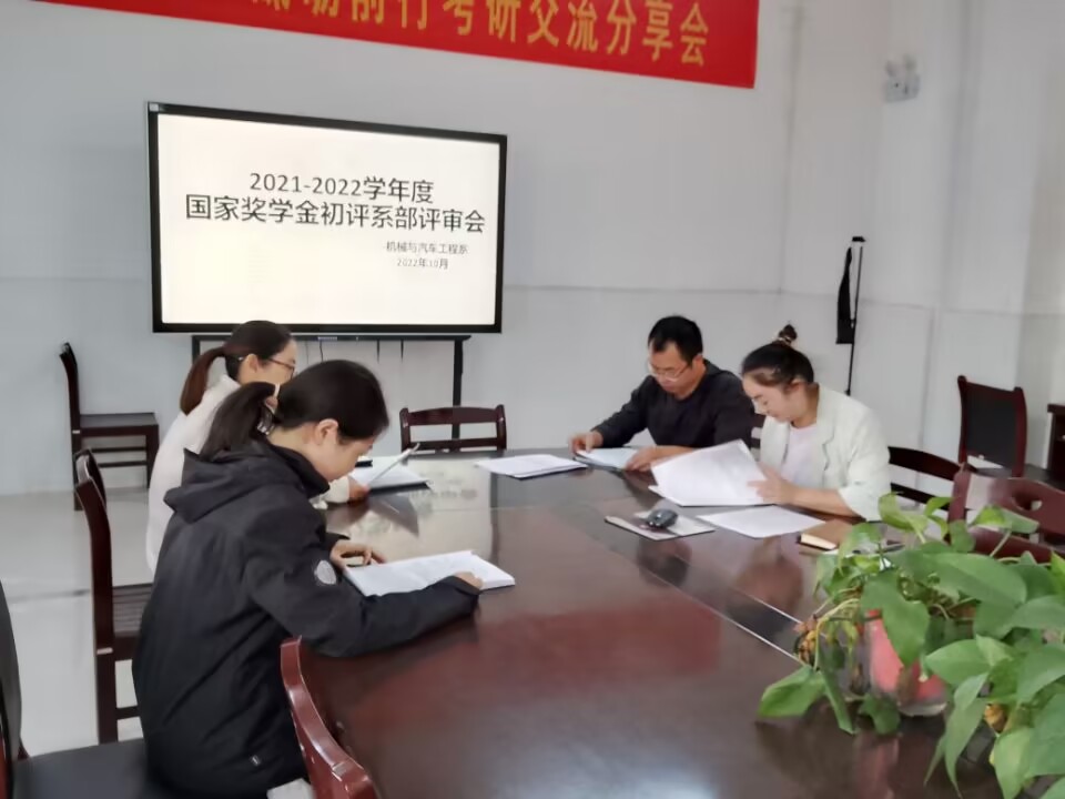 (机械系 全春艳)依照学校《关于做好2021-2022学年本专科国家奖学金初评工作通知》文件要求,为切实做好国家奖学金初评工作,2022年10月14日由机械系全体领导班子成员及相关辅导员成立了专门的评审小组,对提交了国家奖学金申请的9名同学进行了初步评审核定。